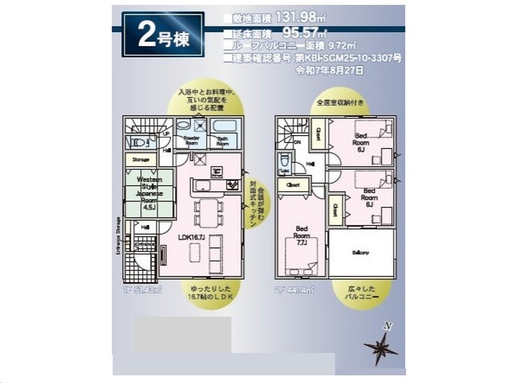 | 建築確認番号 | 第KBI-SGM25-10-3307号 | 駐車スペース | あり(カースペース) |