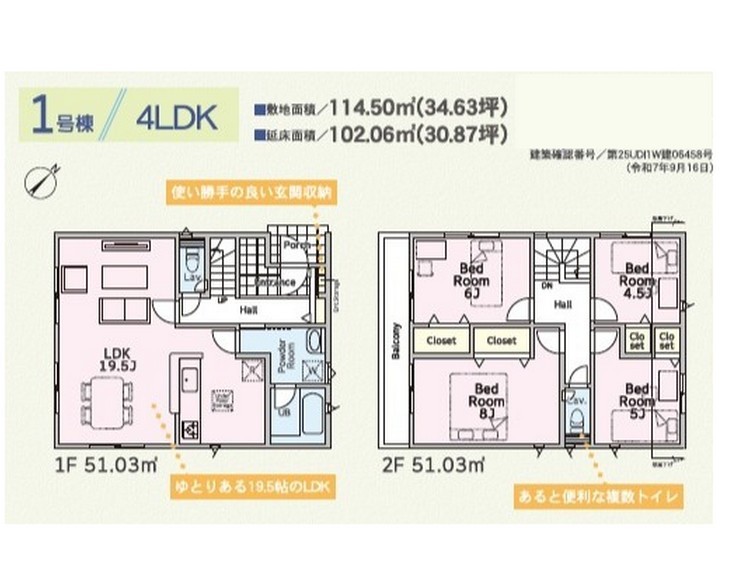 | 土地面積 | 114.5m² 実測 | ||