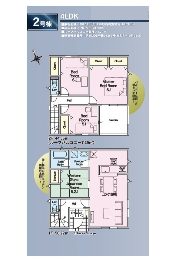 | 建築確認番号 | 第25UDI1W建08264号 | 駐車スペース | 2台(カースペース) |