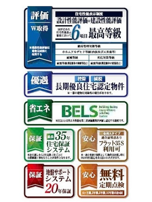 平坦地緑豊かな住宅地閑静な住宅地地盤調査済LDK15帖以上耐震構造省エネ・エコ住宅長期優良住宅全室2面採光床下収納全居室収納複層ガラス設計住宅性能評価付建設住宅性能評価付(新築時)浄水器省エネ給湯器ガスコンロシステムキッチンカウンターキッチン3口以上コンロトイレ2ヶ所温水洗浄便座シャワー付洗面台浴室乾燥機浴室暖房追焚機能浴室1坪以上浴室に窓オートバス全居室フローリングウォークインクローゼットTVモニタ付インターホン高速ネット対応BSCSCATV24時間換気システム保育園・幼稚園800m以内公園800m以内陽当り良好通風良好フラット35Sに対応