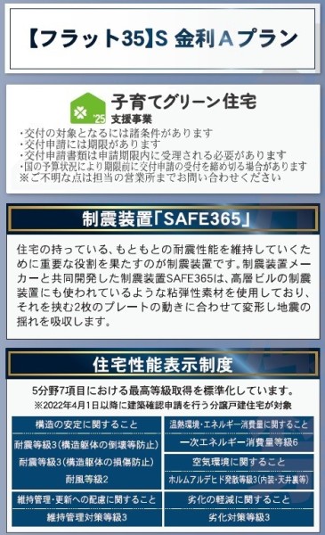 緑豊かな住宅地閑静な住宅地地盤調査済LDK15帖以上耐震構造制震構造省エネ・エコ住宅床下収納複層ガラス設計住宅性能評価付建設住宅性能評価付(新築時)浄水器省エネ給湯器ガスコンロシステムキッチンカウンターキッチン3口以上コンロパントリー(食器・食品の収納庫)トイレ2ヶ所温水洗浄便座シャワー付洗面台浴室乾燥機浴室暖房追焚機能浴室1坪以上浴室に窓オートバス全居室フローリングウォークインクローゼットTVモニタ付インターホンスマートキー高速ネット対応BSCSCATV防犯カメラ24時間換気システム小学校800m以内コンビニ400m以内陽当り良好通風良好フラット35Sに対応
