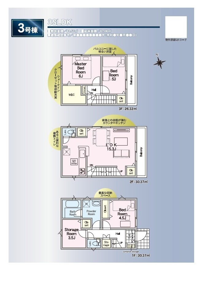 | 建物面積 | 87.06m² ~ 87.06m² 実測 | ||
