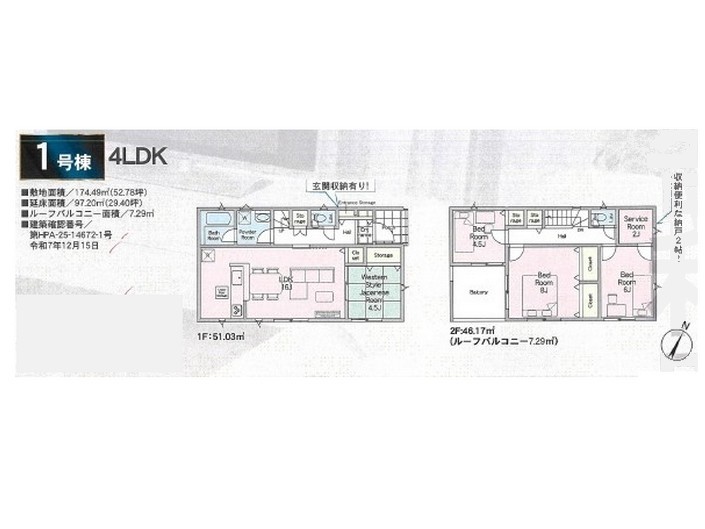 | 土地面積 | 174.49m² ~ 182.06m² 実測 | ||