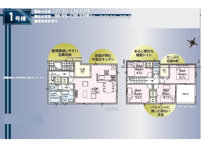 | 土地面積 | 127.92m² 実測 | ||