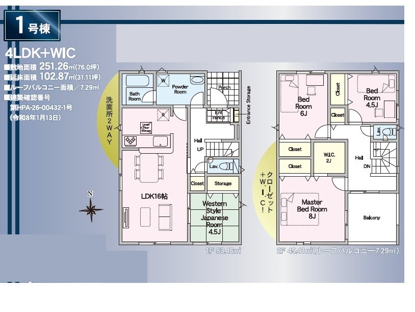 | 土地面積 | 251.02m² ~ 251.41m² 実測 | ||