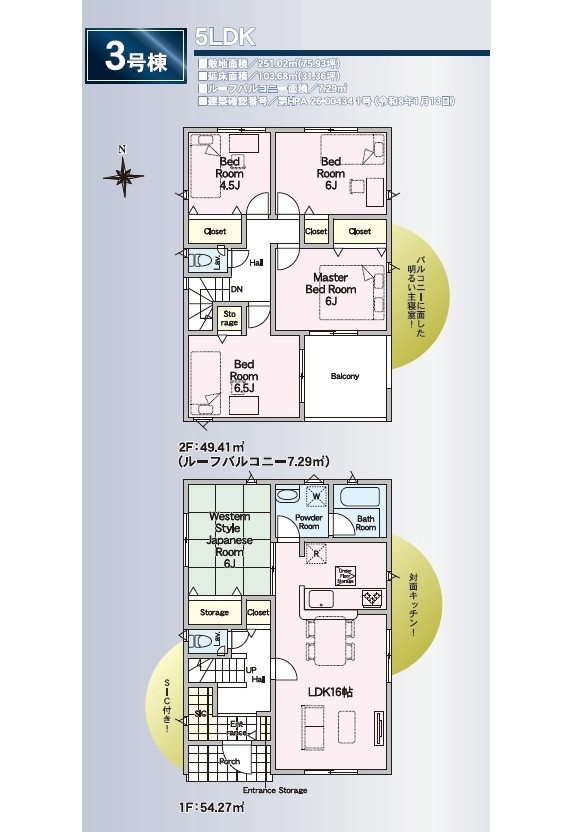 | 建物面積 | 98.82m² ~ 103.68m² 実測 | ||
