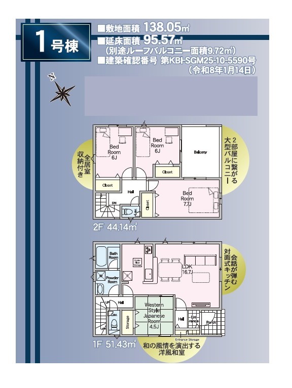 | 建築確認番号 | 第KBI-SGM25-10-5590号、他 | 駐車スペース | あり(カースペース) |