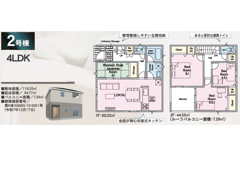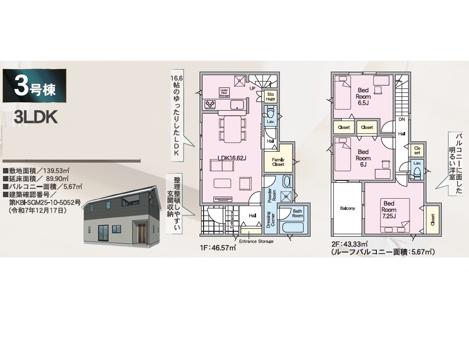 | 建築確認番号 | 第KBI-SGM25-10-5050号、他 | 駐車スペース | あり(カースペース) |