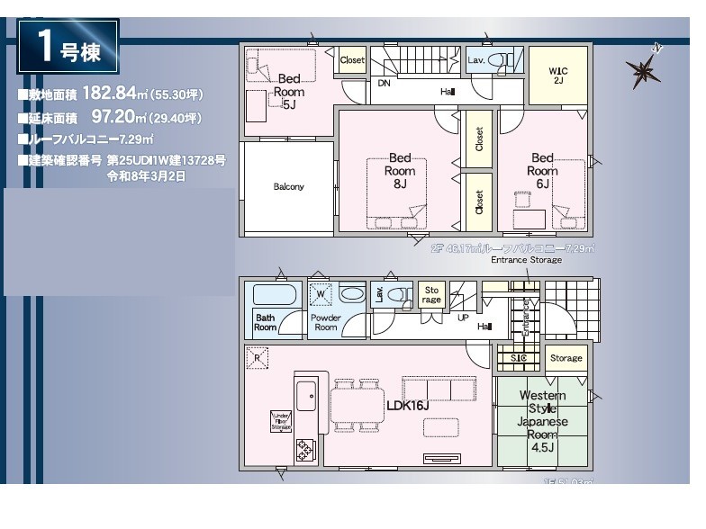 | 土地面積 | 182.84m² 実測 | ||