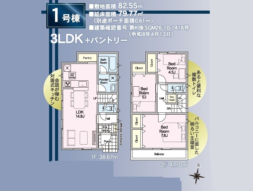 | 建物面積 | 79.77m² ~ 82.21m² 実測 | ||