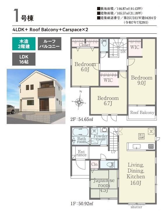 | 建築確認番号 | 第25UDI1W建04204号 | 駐車スペース | 2台(カースペース:並列) |