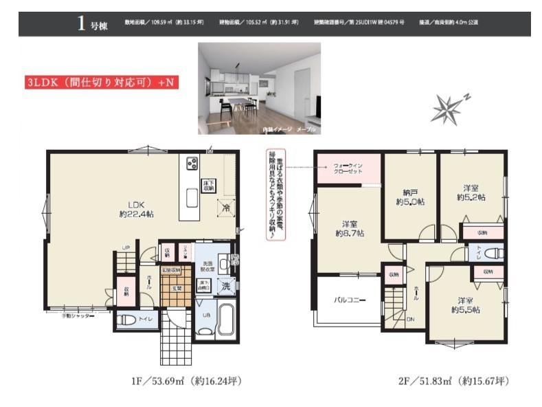 | 建物面積 | 105.52m² 実測 | ||