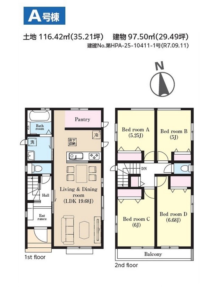 | 建築確認番号 | 第HPA-25-10411-1号、他 | 駐車スペース | 2台(カースペース:並列) |