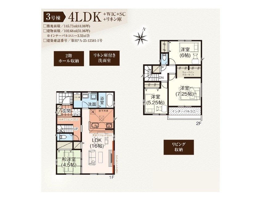 | 建築確認番号 | 第HPA-25-12581-1号、他 | 駐車スペース | 2台(カースペース) |