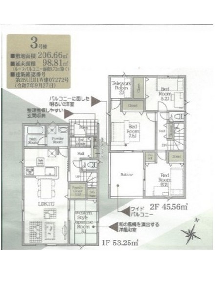 | 建築確認番号 | 第25UDI1W建07272号 | 駐車スペース | あり(カースペース) |