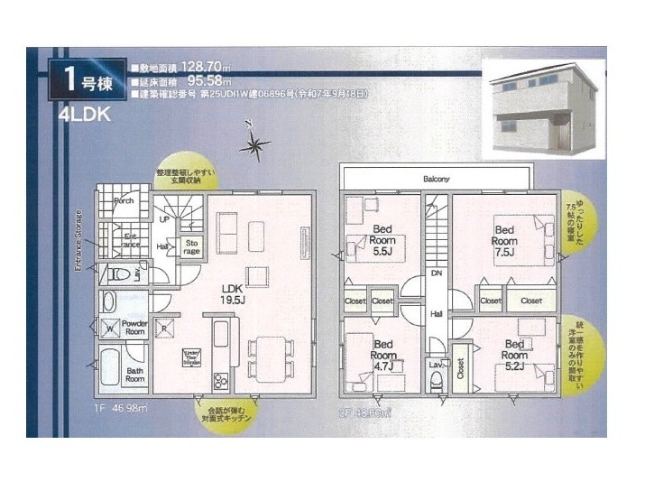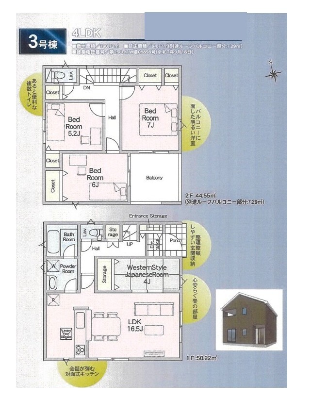 | 建物面積 | 94.77m² ~ 95.58m² 実測 | ||