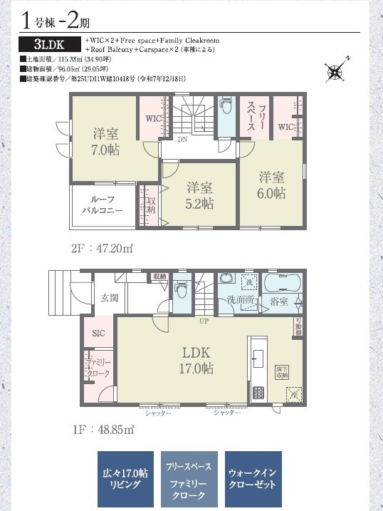 | 建築確認番号 | 第25UDI1W建09563号 | 駐車スペース | 2台(カースペース) |