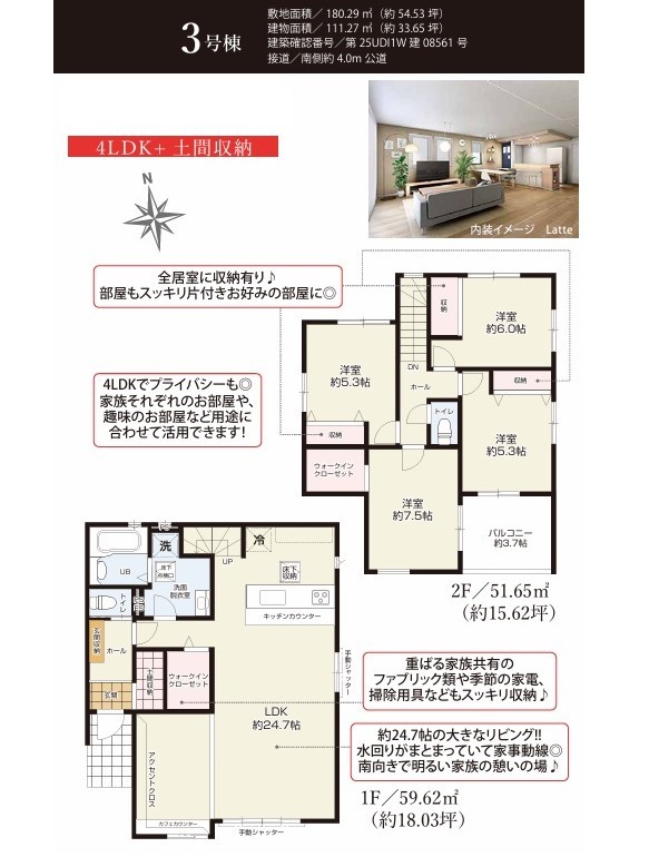 | 建物面積 | 111.27m² ~ 111.27m² 実測 | ||