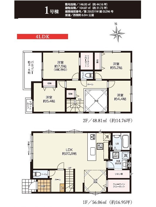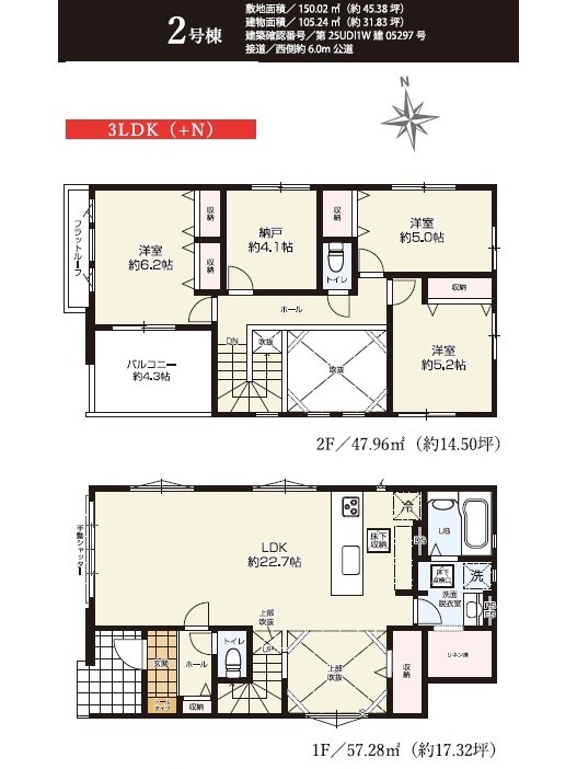 | 建物面積 | 104.87m² ~ 105.24m² 実測 | ||