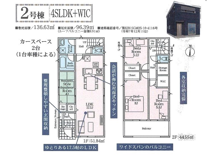 | 建築確認番号 | 第KBI-SGM25-10-4116号 | 駐車スペース | 2台(カースペース:縦列) |