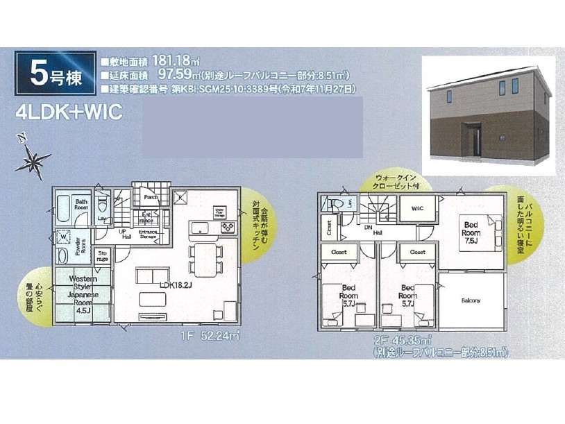 | 建築確認番号 | 第KBI-SGM25-10-3386号 | 駐車スペース | あり(カースペース) |