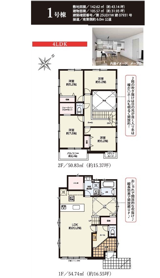 | 間取 | 4LDK (LDK20.2帖、洋室7.6帖、洋室5.2帖、洋室5.2帖、洋室5.2帖) | ||
