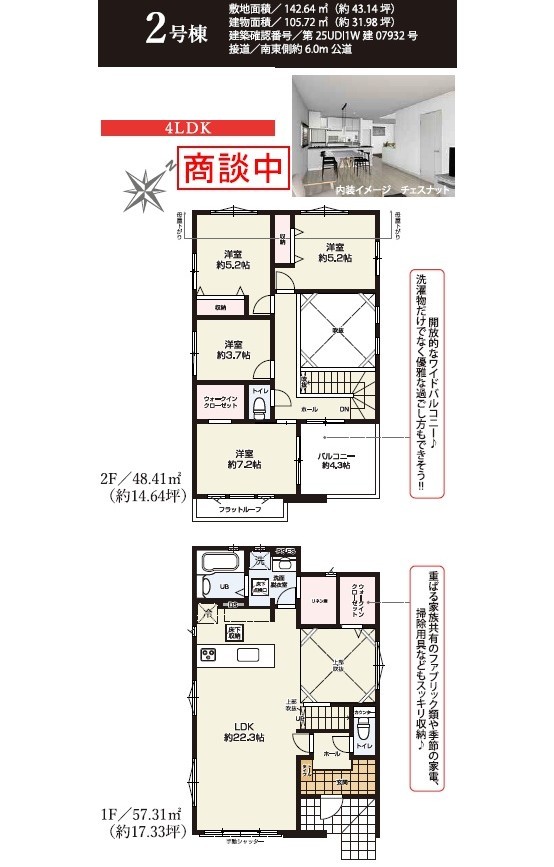 | バルコニー | 南東向き | 建物現況 | 完成済 |