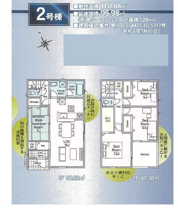 | 建築確認番号 | 第KBI-SGM25-10-5716号、他 | 駐車スペース | あり(カースペース) |