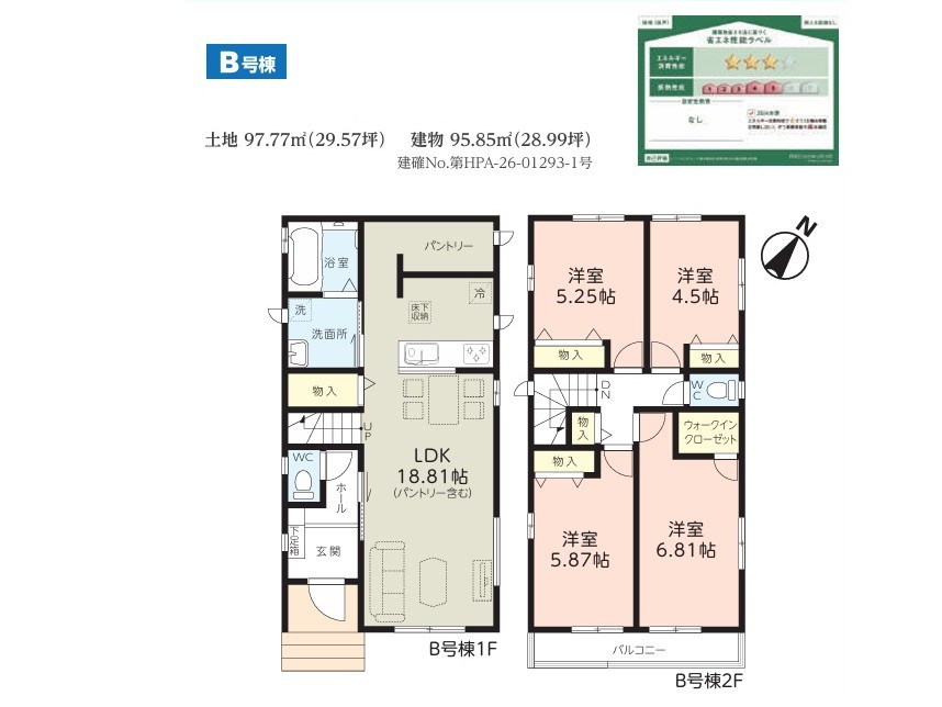 | 建築確認番号 | 第HPA-26-01292-1号 | 駐車スペース | 1台(カースペース) |