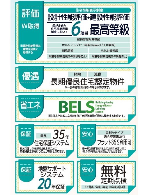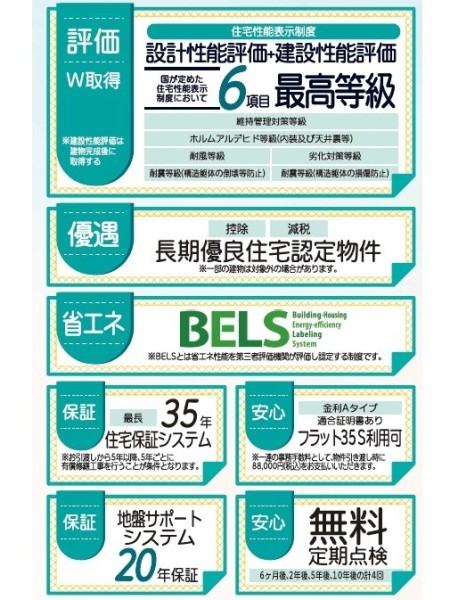 緑豊かな住宅地閑静な住宅地LDK15帖以上耐震構造省エネ・エコ住宅長期優良住宅南向き全室南向き全室2面採光庭床下収納全居室収納複層ガラス設計住宅性能評価付建設住宅性能評価付(新築時)浄水器省エネ給湯器ガスコンロシステムキッチンカウンターキッチン3口以上コンロトイレ2ヶ所温水洗浄便座シャワー付洗面台浴室乾燥機浴室暖房追焚機能浴室1坪以上浴室に窓オートバス全居室フローリングウォークインクローゼットTVモニタ付インターホン高速ネット対応BSCSCATV24時間換気システム保育園・幼稚園800m以内コンビニ400m以内公園800m以内陽当り良好通風良好フラット35Sに対応