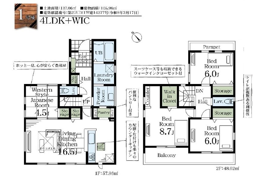 | 建物面積 | 105.98m² 実測 | ||