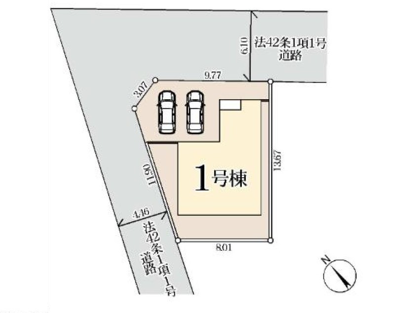 | 権利種類 | 所有権 | 接道 | 北西側4.46M公道に接道 北東側6.1M公道に接道 |